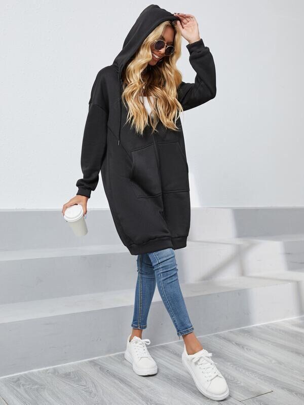 ドロップショルダー ジッパーアップ ロングライン パーカー