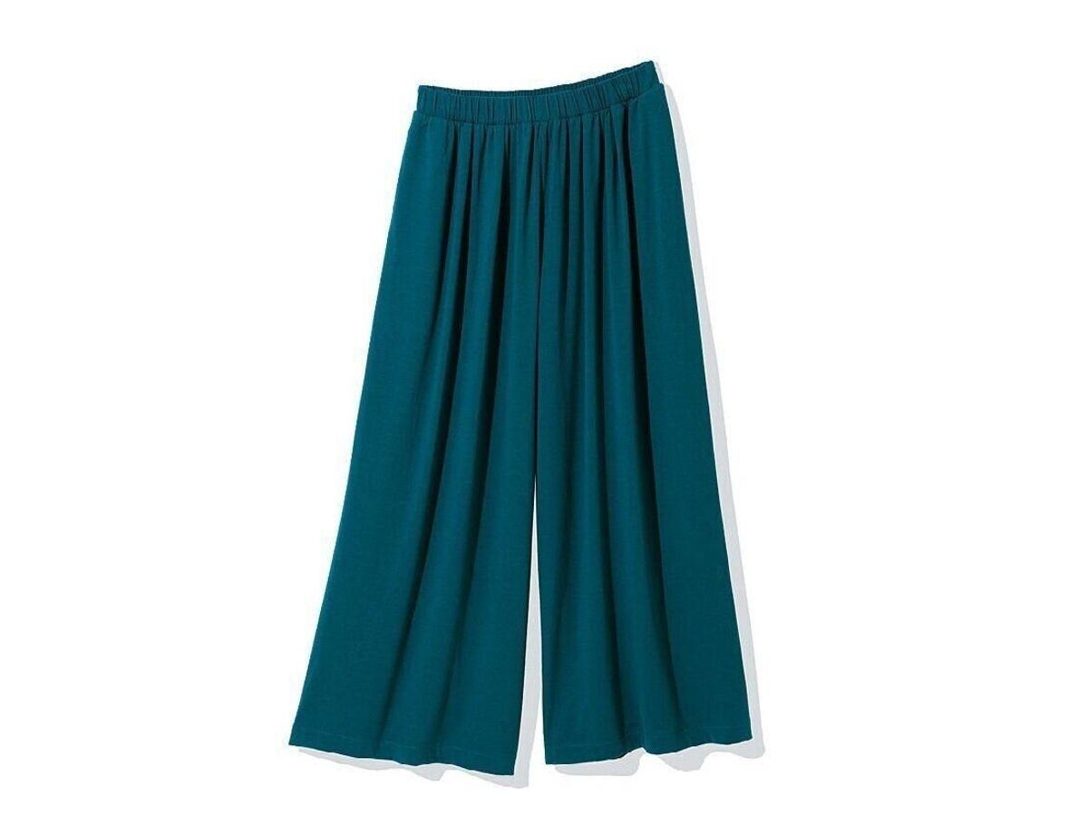 今年は、カラーボトムが流行中!40代が選ぶなら、少し落ち着いたグリーンのワイドパンツが使いやすい。夏中ヘビロテ間違いなしですよ!(グリーン、ピンク、ベージュ、ブラック・全4色)/ユニクロ