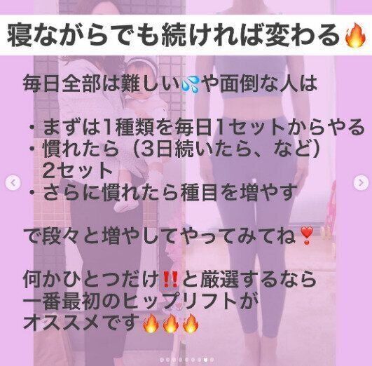 寝ながらだってできるんです!筋トレや有酸素運動など、運動が苦手な人にはとくにハードルが高い!でも、やろうと思えば寝ながらでもできると、saki_diet_169cmさんは言います。