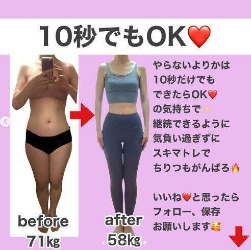 やらないよりはたった10秒でもできたらOKと言います。気負いすぎずに、すき間時間を見つけてまずは体を動かしてみましょう!それがいつの間にか習慣化すればラッキー。このビフォーアフターは、たった6カ月後の変化なのです。