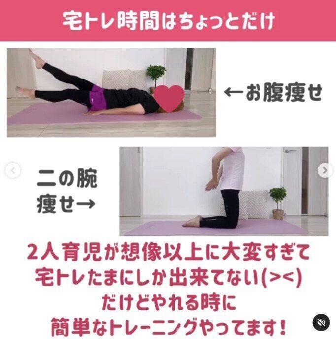 想像以上に大変な2人育児。自宅トレーニングはたまにしかできていないと言います。でも、できるときにちょっとでも、継続をしているということが何よりもすごいですよね!今後は、ボディメイクのためにも少しずつトレーニングを増やしていきたいのだそう。