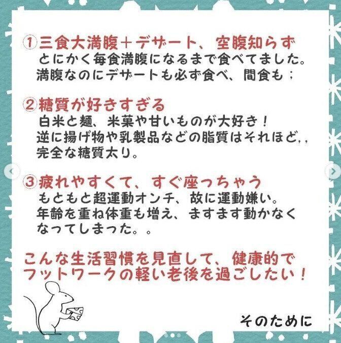自分が太ってしまった原因がわかったら、それを改善すればいい!そう考えてchakke147さんが始めたダイエットは、この3つです。