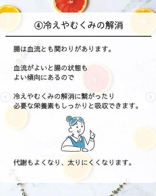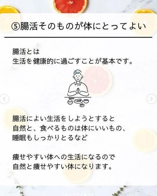 保健指導も行うプロに、「腸活」とダイエットの関係を教えてもらいました。お通じがよくなることは知っている人も多いですが、腸の状態が脳や血流とも関係してくるということに驚きでしたね。だからこそ、腸を整えることで体全体を整えることにつながり、健康的な体、そしてダイエットにつながるということだったのです。明日から始めてみようかなという人は、bicho_nurseさんのSNSには、簡単にできる「腸活」方法もたくさん紹介されています。ぜひ参考にしてみてくださいね!