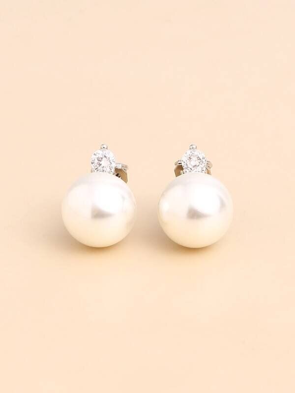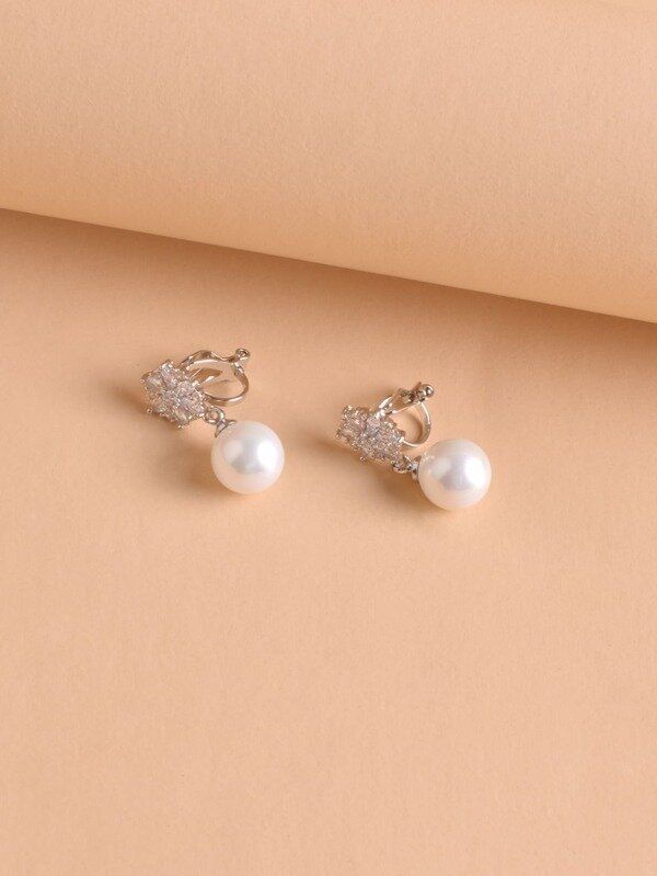 キュービックジルコニア & 人工パールデコレーション イアリングクリップ