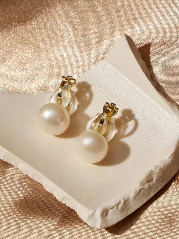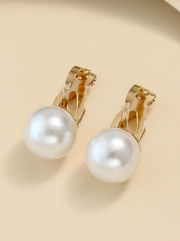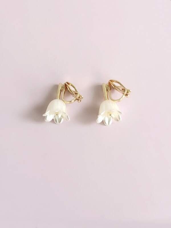 人工パールデコレーション 花デザイン イアリングクリップ