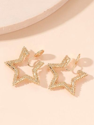 キラキラした星形をしたイヤリング。口コミによると、それほど大きさもないようです。イエローゴールドなので、悪目立ちせず、どんなファッションにも合わせやすそうですね。