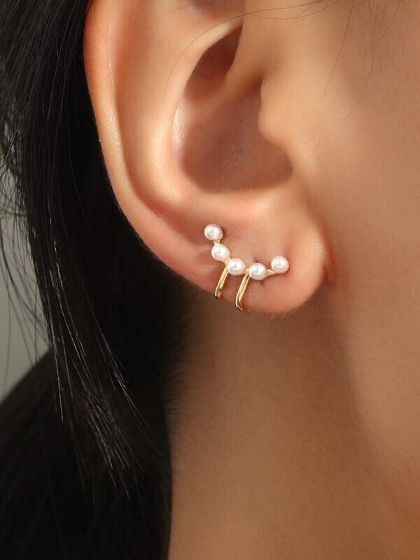 フェイクパールデコレーションイヤーカフ