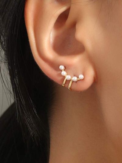 ラインストーン&フェイクパール 装飾 イアリングクリップ