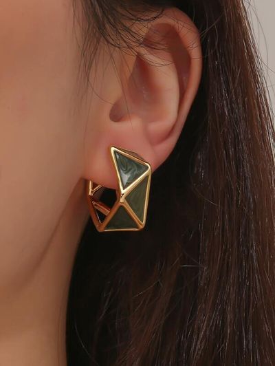 グリーンのカラーと幾何学デザインが目をひく大きめのイヤリング。大きさも2cmほどあるようなので存在感も抜群です。こちらはすべり止めつきなので、落下しづらいのもいいですね。