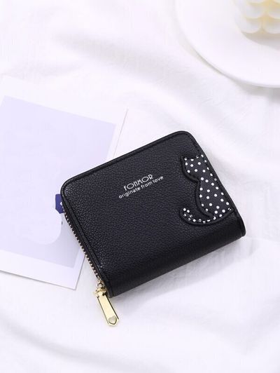 ネコの模様がかわいいコンパクトな財布。中を開けるとピンクになっていてかわいらしいデザインです。小銭やカードもたくさん入りそう!