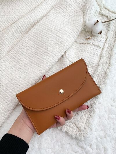 シンプルなブラウンのポーチのようなお財布。口コミによると、お札しか入らないけれど、口が大きく開くのでとても使いやすいそう。ボタンの開け閉めもスムーズにできるようです。
