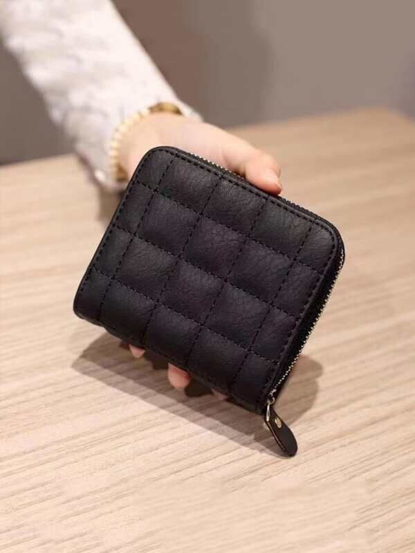 格子柄のブラック、コンパクトな財布です。口コミによると、この値段でこのクオリティは大満足で、全く安く見えないそう。これはお買い得かもしれませんね。