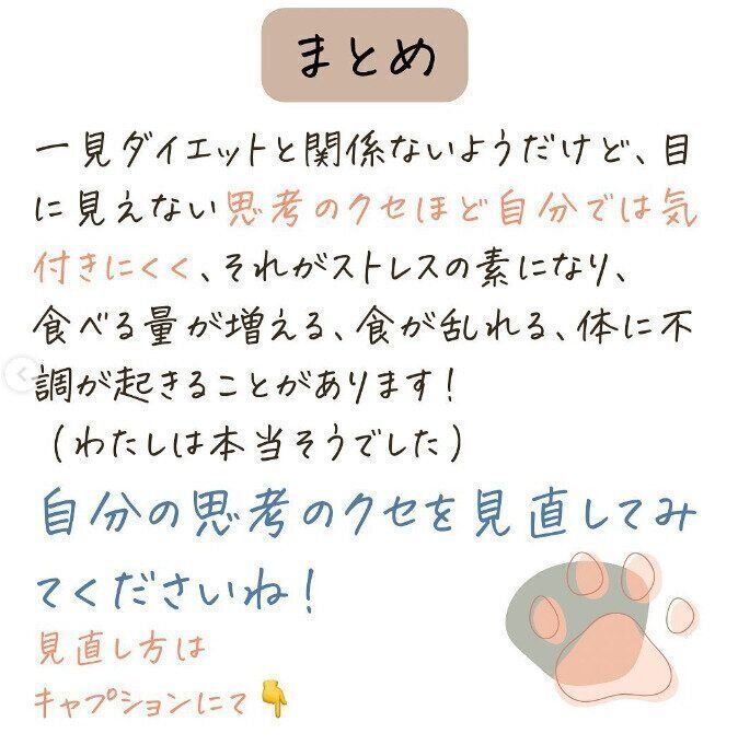 nomado.career.counselorさんは、「人に言われてはじめて、自分のクセに気づくことってありませんか?」と言います。じつはご本人も、気づかなかった「思考のクセ」がありました。そして、みずからもダイエットで-11kg痩せるまでに、このクセをやめてよかったと、今では心から感じているのだそう。一見、ダイエットに関係ないように見えますが、じつは深いつながりが。具体的にみてみましょう。