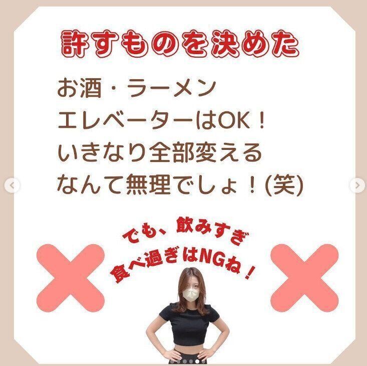 ジムに通う、食事の記録をつけるなど、今の生活をがらりと変えることを取り入れるのではなく、「3日続けられること」「いやと思わなかったこと」を続けることを心がけました。「3日やってみていけるかも…ということは、1カ月続けてみましょう。そうすれば習慣になります」とura_diet_933さんは言います。