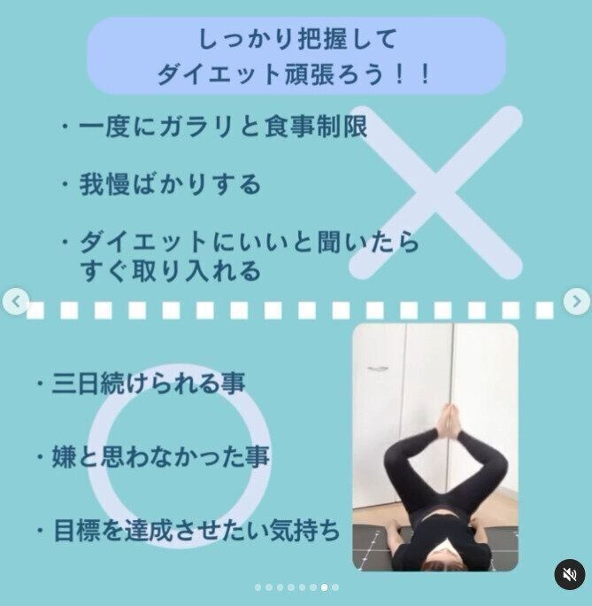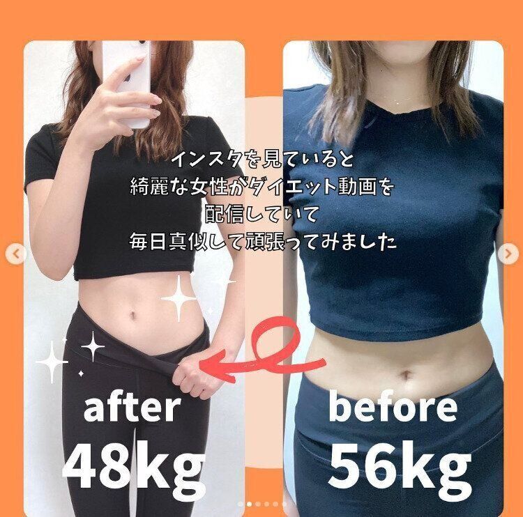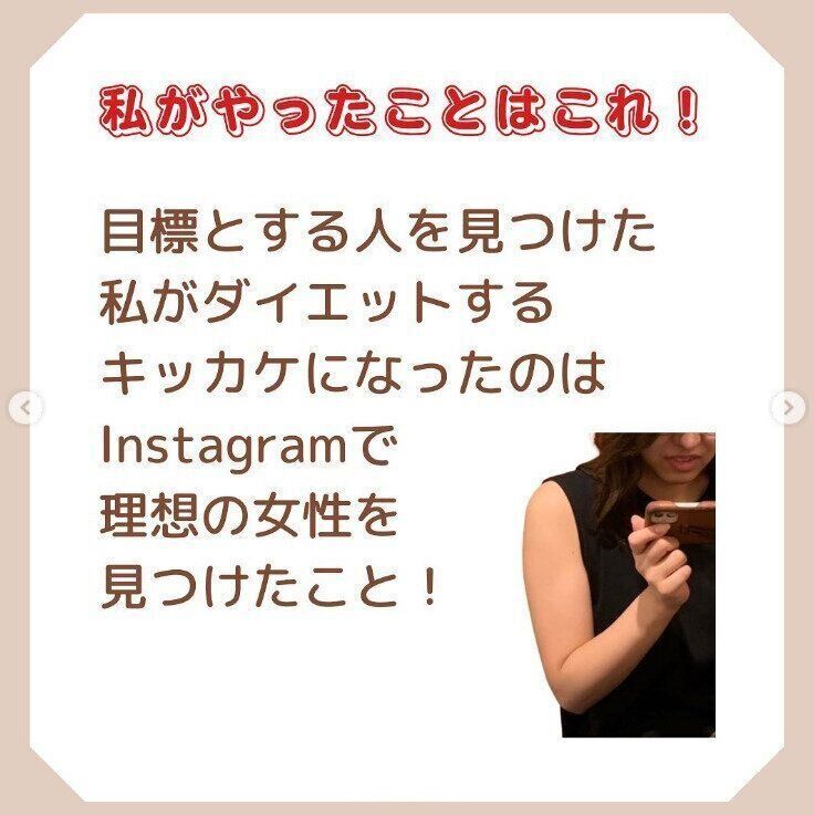 そして、理想とするイメージに近い女性をInstagramで発見!ダイエット動画を配信されており、毎日、真似をしながらがんばることからスタートしたのです。「こんな女性になりたい!」という思いは、日々のモチベーションのアップにつながります。