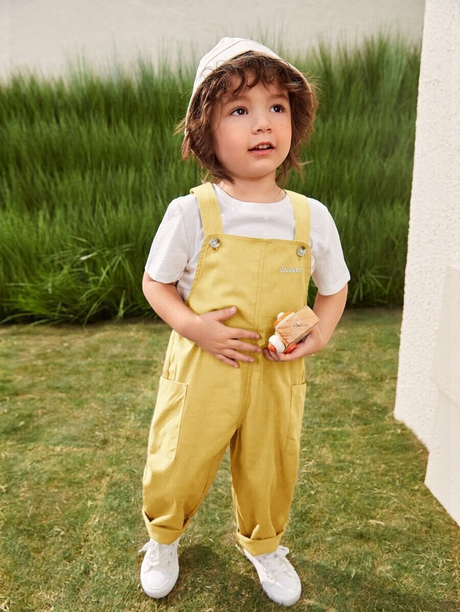 ラウンドネック ティー & 文字パターン オーバーオール