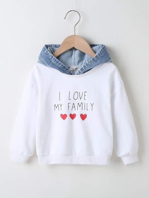 英字とハートのイラストがかわいいパーカー。パーカー部分がデニムなっていてとてもおしゃれ。口コミによると、フードに耳がついていてとてもかわいいようです。