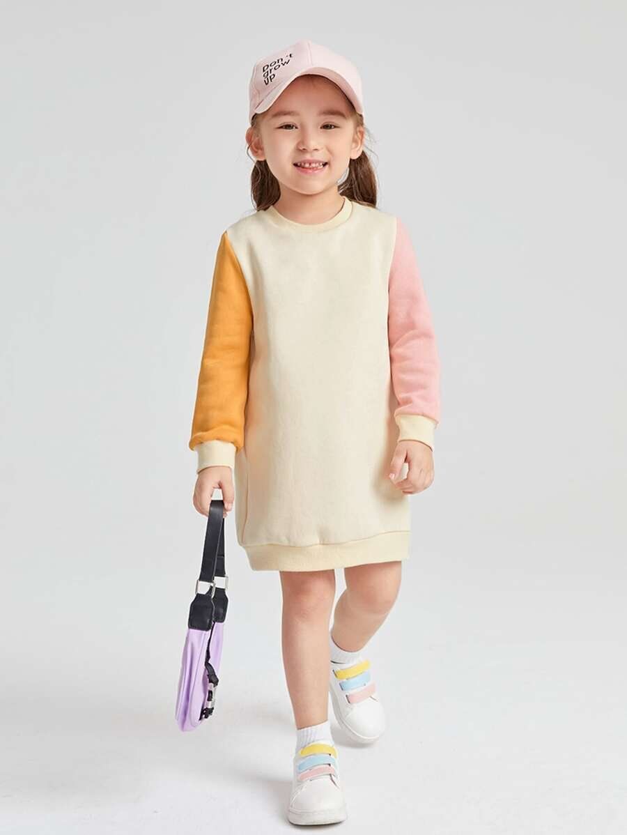 コントラストスリーブ サーマル スエットシャツ ドレス
