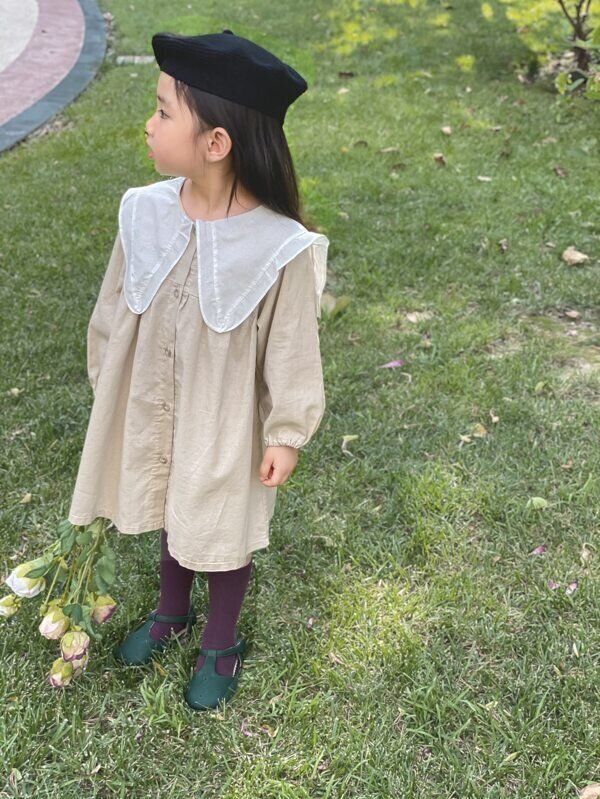 大きめの襟がかわいらしいワンピース。口コミによると、ワンピースというより、長めのチュニックのよう。サイズ感はゆったりめでかわいいそう。