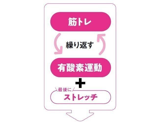 程よい筋トレと有酸素運動を繰り返すことで、脂肪が一番燃焼しやすい心拍数&体温をキープ。上半身も下半身もバランスよく鍛えられて、全身が効率よく燃焼モードになります!