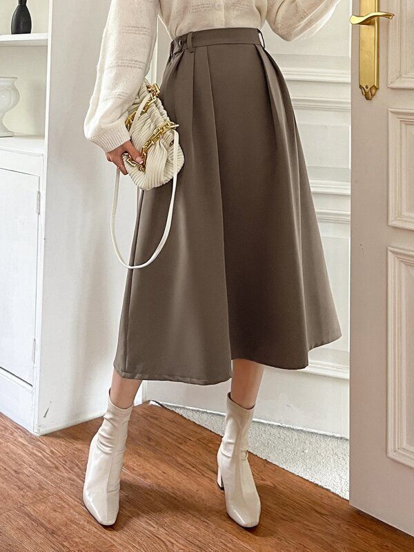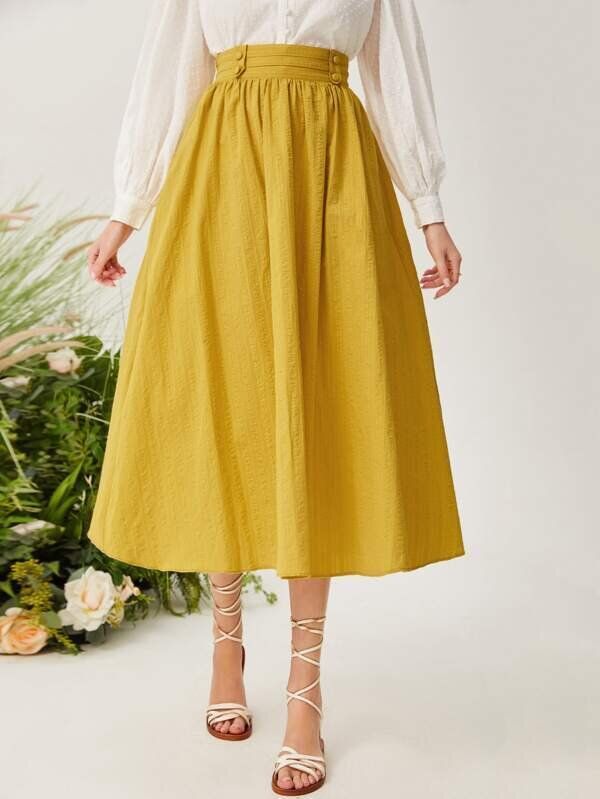SHEIN ハイウェスト ボタン フレアスカート