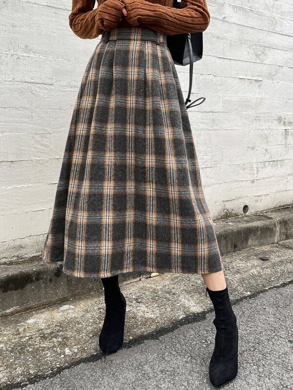 SHEIN BIZwear ボタン ラップ スプリット 格子縞 スカート