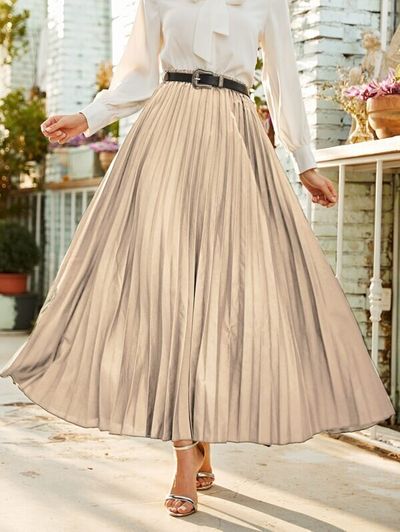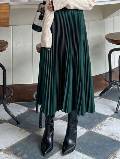 ミディスカート ソリッド プリーツ