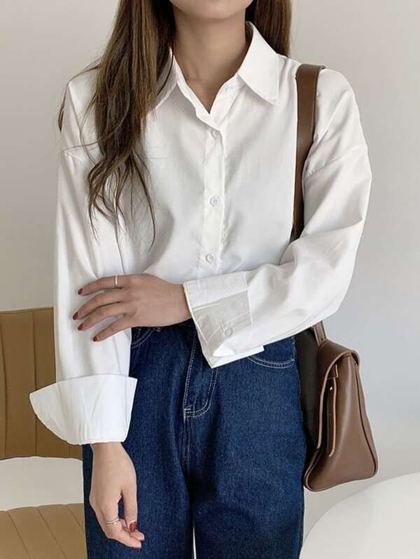 SHEIN BIZwear ソリッド カーブヘム シャツ