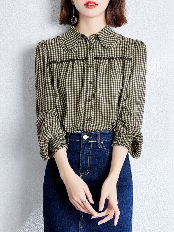 Honeyspot ギンガム コントラストレース フリルトリム シャツ