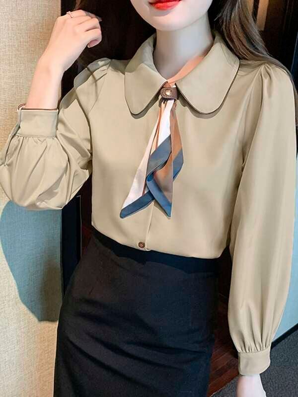Honeyspot ソリッド タイネック ポケットフロント ブラウス