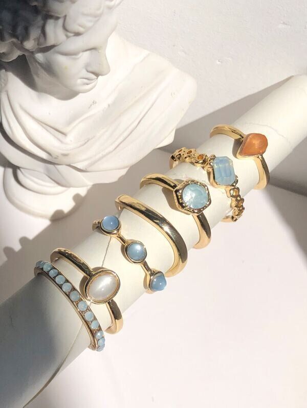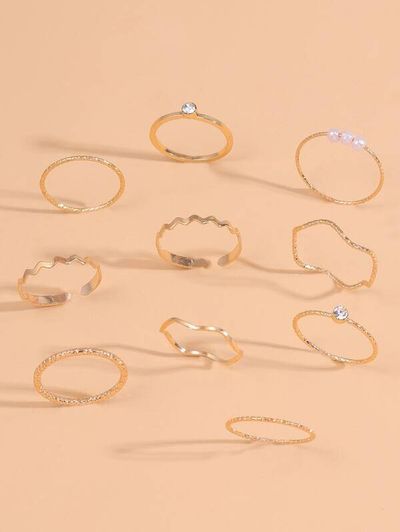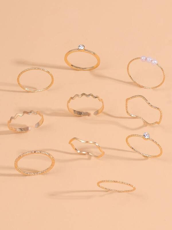 10ピース ラインストーン&フェイクパール 装飾 リング