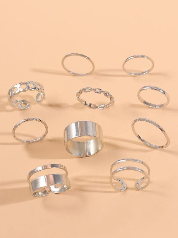 さまざまなデザインのシルバーリングが10個入ったセット。サイズはワンサイズで、サイズを調整できるリングも入っているよう。145円という値段はお得感がありますね。