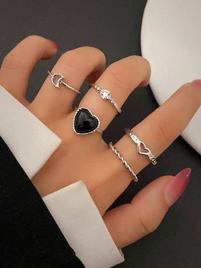 シックなブラックのハートのリングなど、あらゆるデザインのリングが5つセットになっています。5つで183円という値段もびっくりですね。
