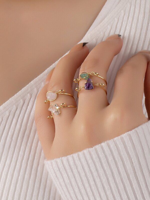 上品なカラーのストーンが目を惹く4つセットのデコレーションリング。口コミによると、サイズは11号ほどのようです。重ねづけに向いているとのこと。このお値段で4つセットになっているのはうれしいですね。