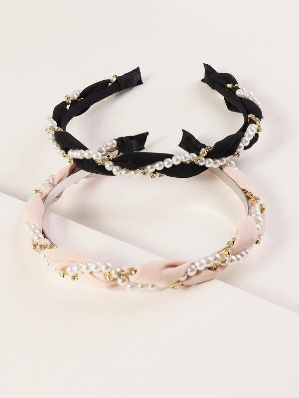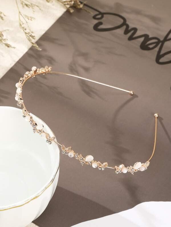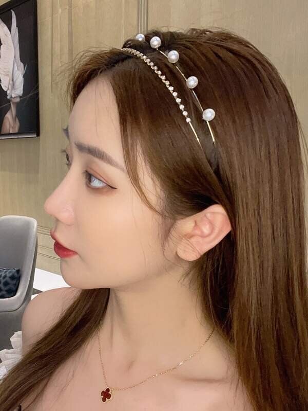 ラインストーン&フェイクパール 装飾 ヘッドバンド