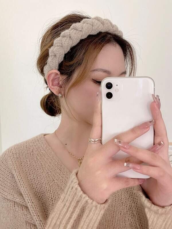 冬に大活躍間違いなしの編み込みのカチューシャ。太めのカチューシャだから存在感もバッチリ!ふわふわしていてとても暖かそうですね。