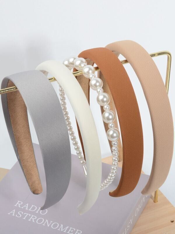 人工パールのカチューシャも入った5本セット。口コミによると、全部のカチューシャがとてもかわいく、5つも入っていてこの値段はとてもお買い得とのこと。いろいろ使い回せそうですね。