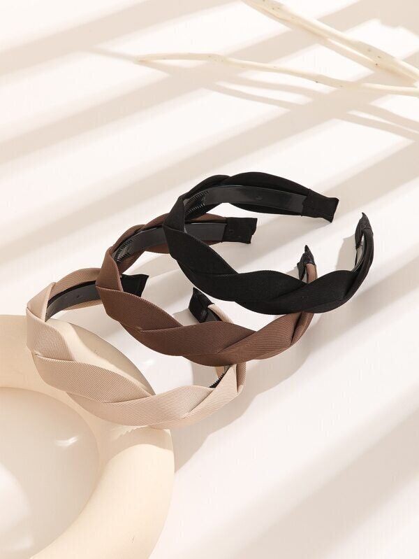 3本入り ミニマリスト 無地柄 ヘッドバンド