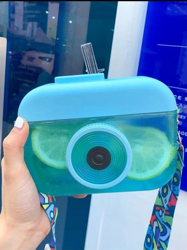 カメラの形をした個性的な水筒。子どもが使うにはちょうどいいサイズですね。口コミによると、首にかける紐もついているようです。