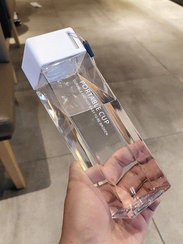 透明のスクエアのデザインがおしゃれな水筒。口コミによると、とても使いやすくておしゃれに見えるそう。257円という値段もお得感がありますね。