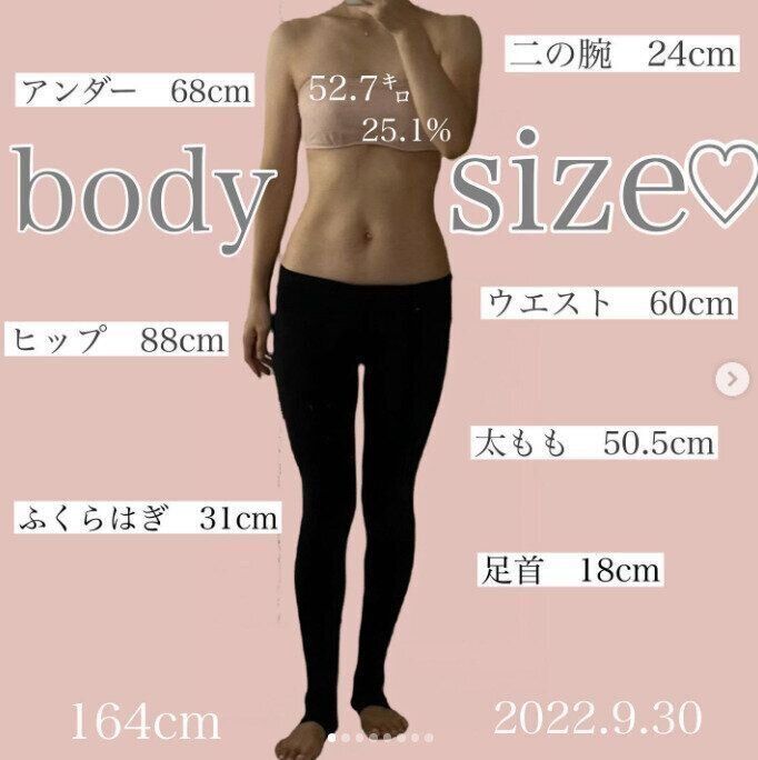 これが2022年、現在のmomo.bodymake8さん。ダイエットに成功してからも、自分が理想とする体を目指して、痩せすぎない、バランスの取れたボディを目指しています。