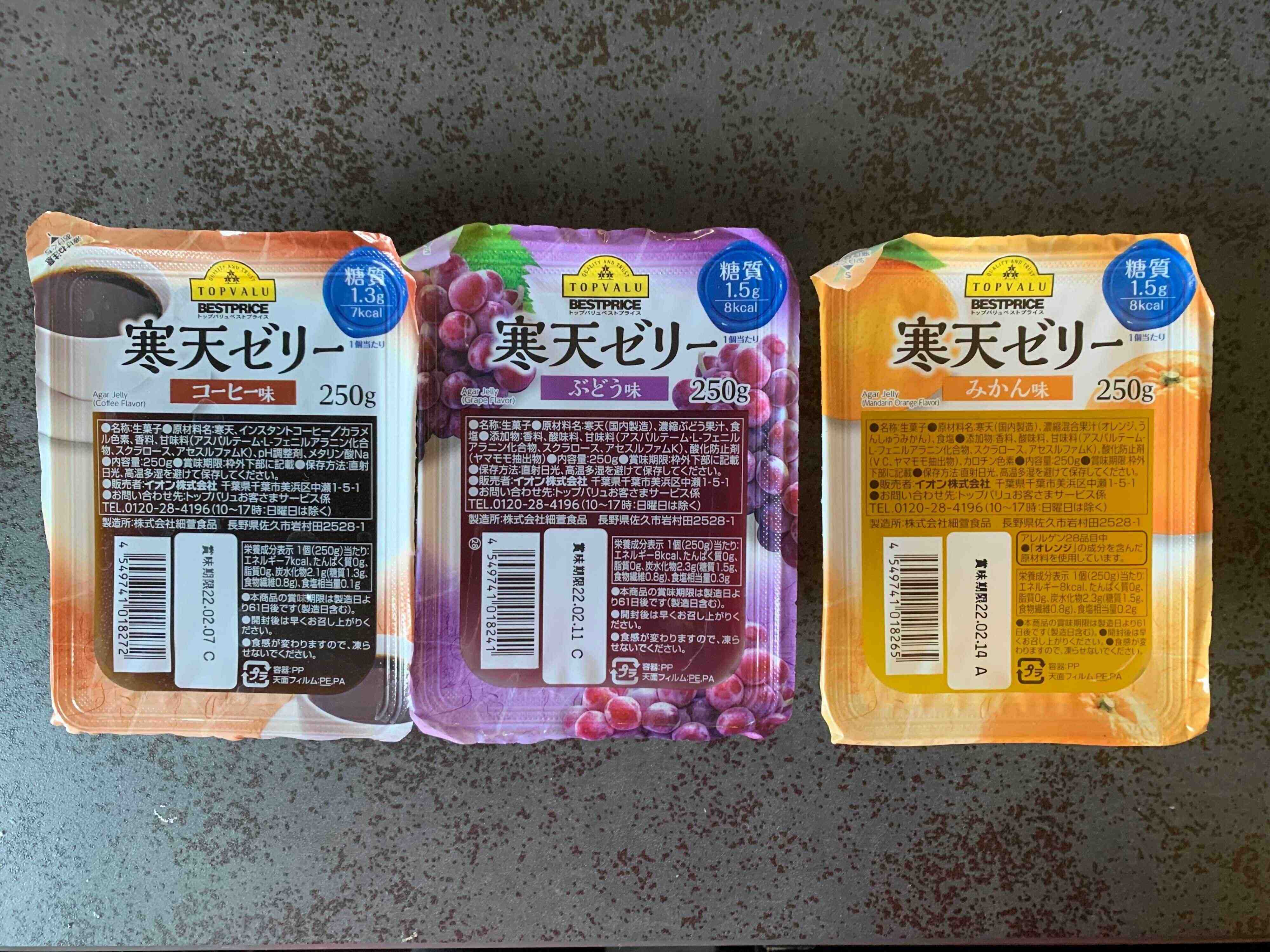 他のメーカーからも低糖質の寒天ゼリーは発売されていますが、トップバリュの物は、味と食感がピカイチ!