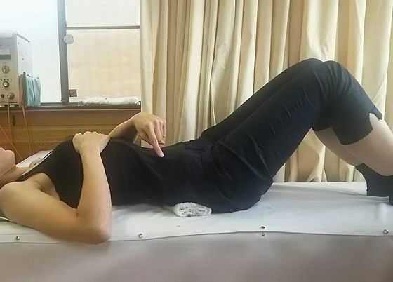 ポイントは腰ではなく仙骨の下にタオルを敷くこと。準備ができたらそのまま万歳!ついでに反対側の手首をつかみ引き上げることで、大胸筋もストレッチできるのでオススメだそうです。
