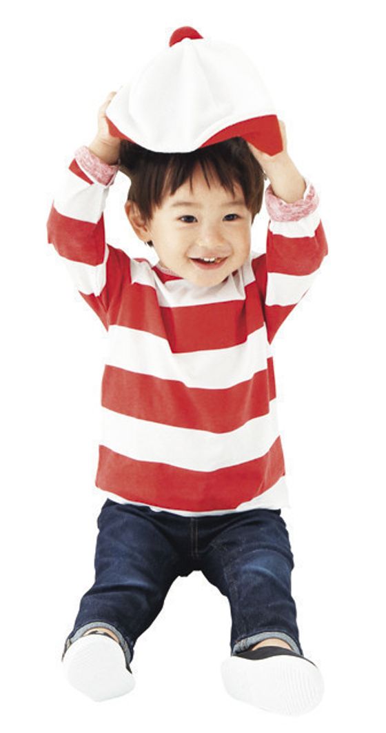 赤×白のボーダーTシャツとデニムで、人気絵本『ウォーリーをさがせ!』の主人公に。ボーダーは太めの幅をチョイスして、デニムは濃いめのインディゴカラーにすると、ウォーリーらしく仕上がります。帽子のほかに、丸眼鏡をプラスしても◎