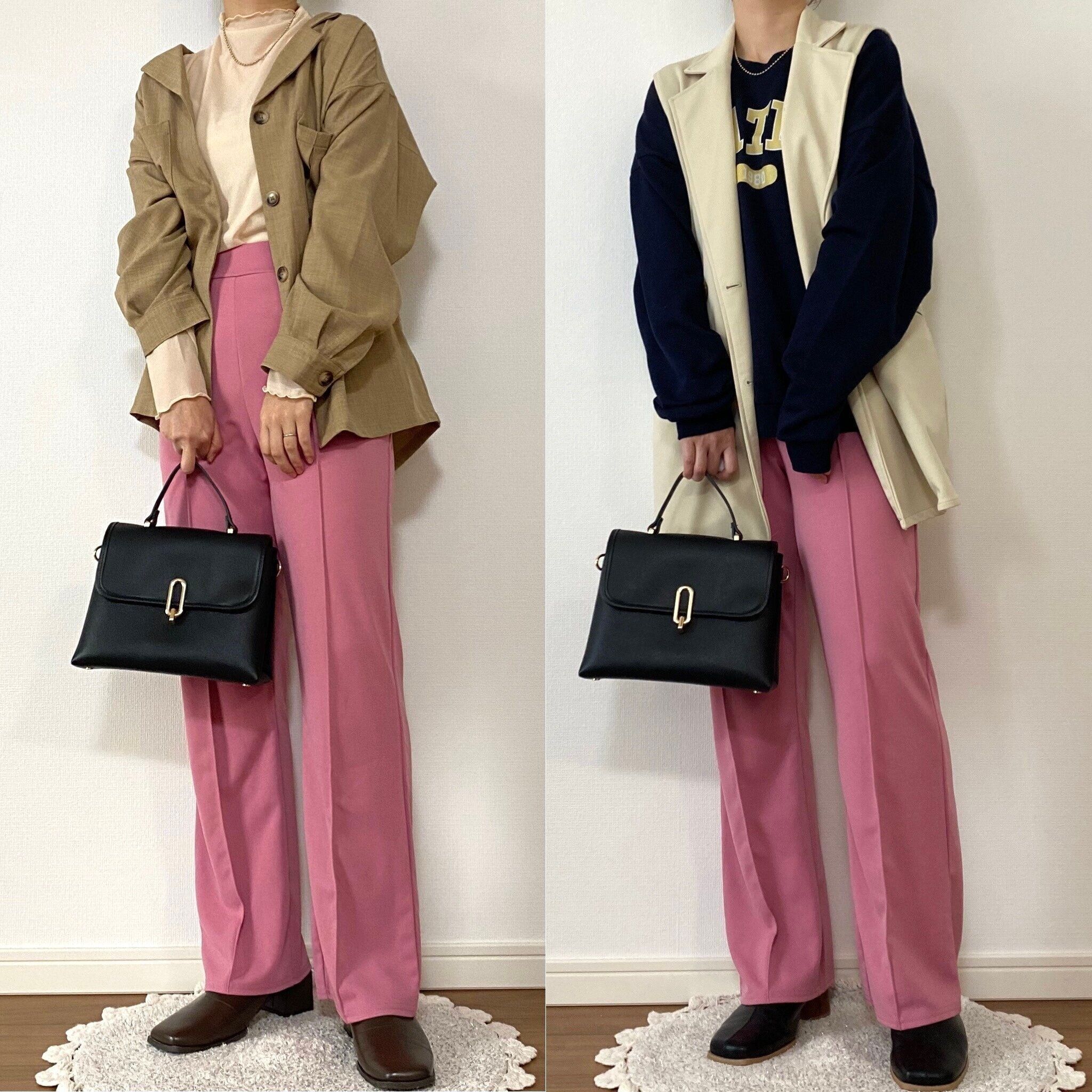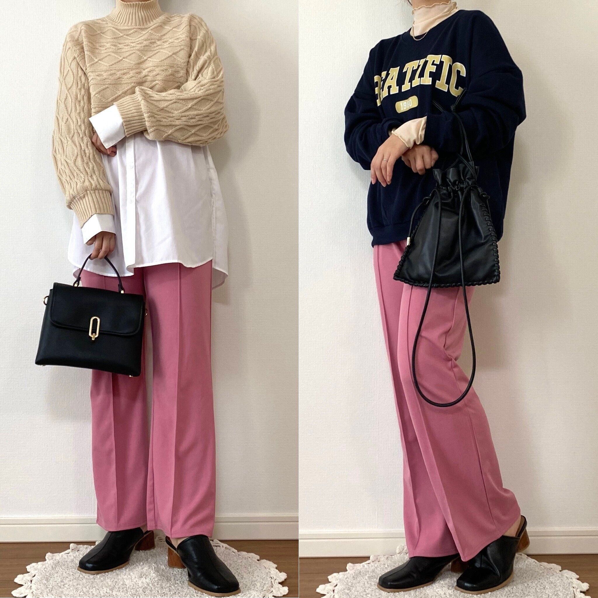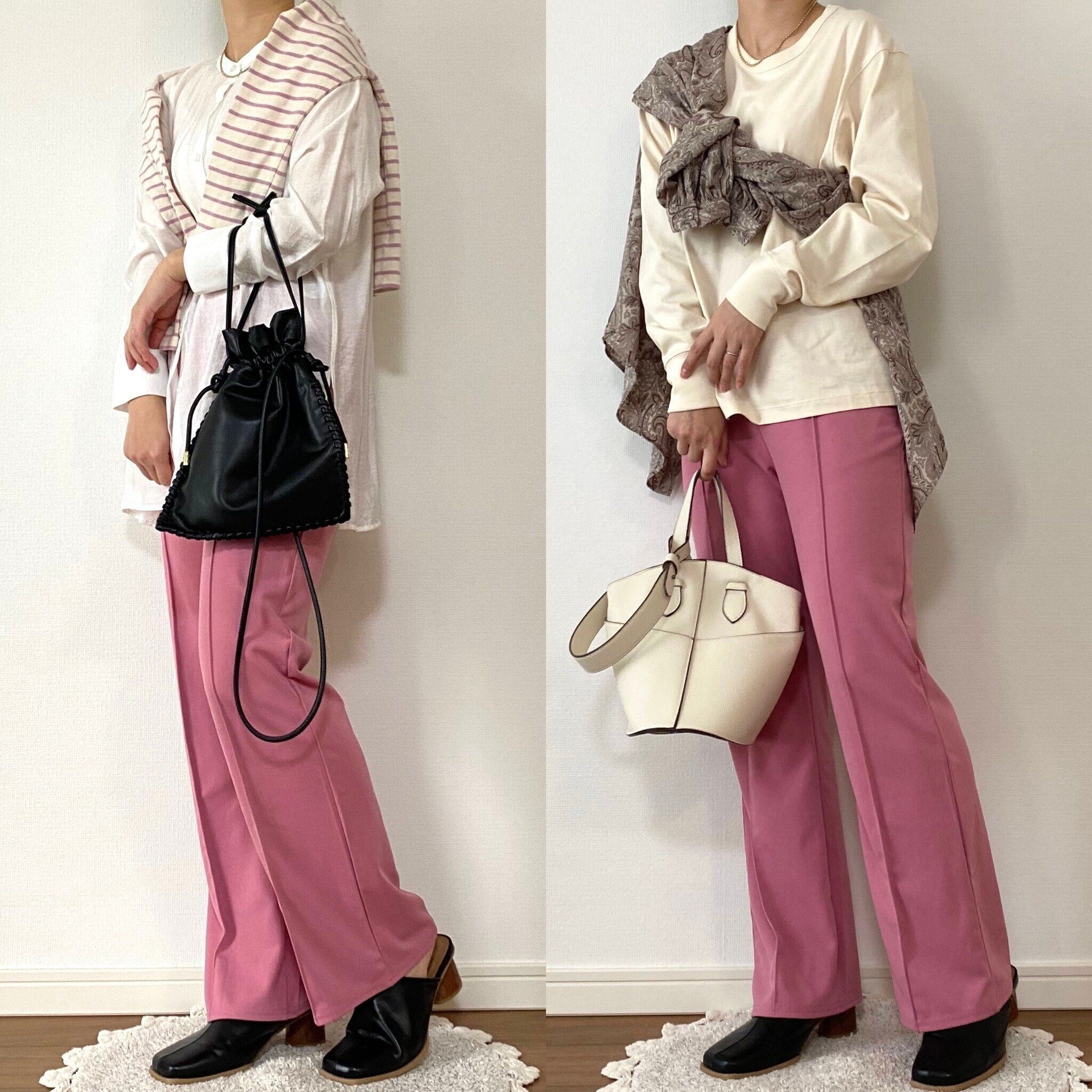 存在感のあるピンクは履くだけでパッと目を惹きますね!