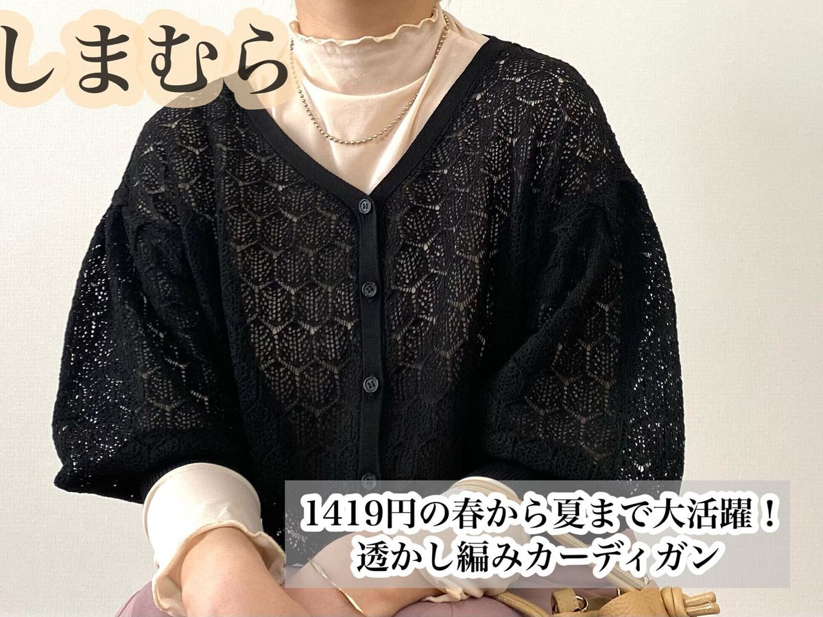 今回はこれからの季節に大活躍しそうな透かし編みで、シルエットがとってもかわいい1419円のカーディガンをご紹介します。