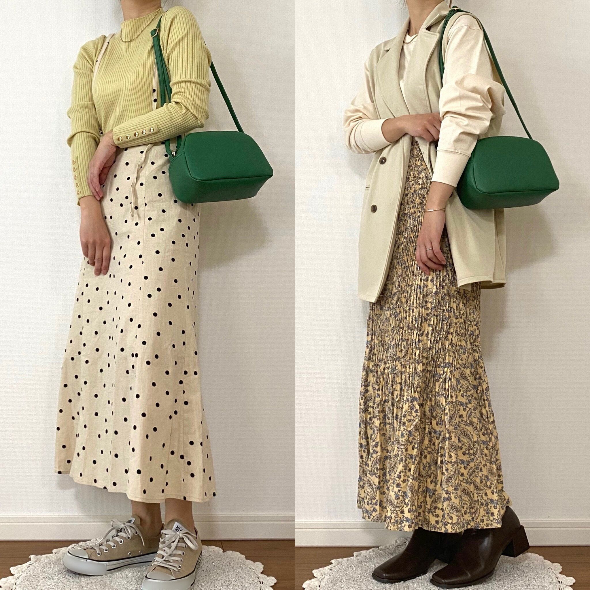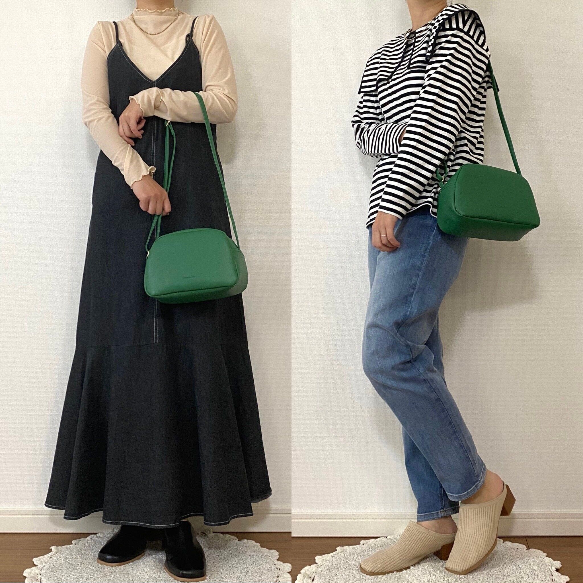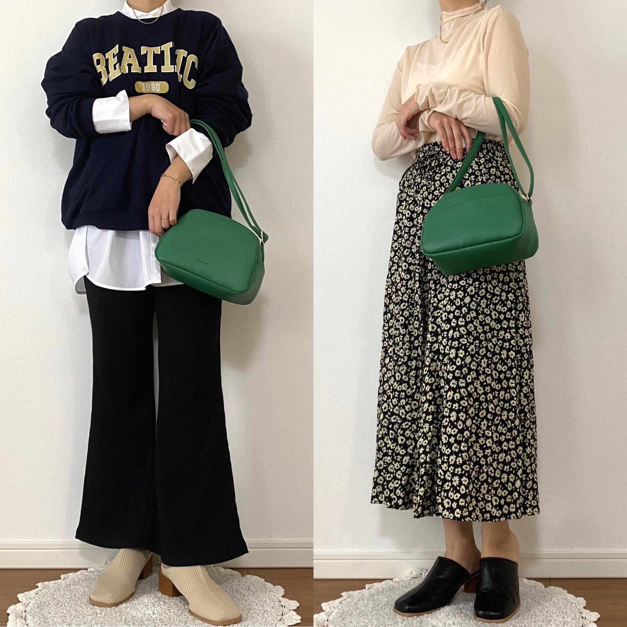 シンプルにまとめすぎたり、ワントーンにしてみたけどなんだかコーデがぼやけるな…といった時に差し色のバッグを合わせるとコーデのポイントになってくれますね。