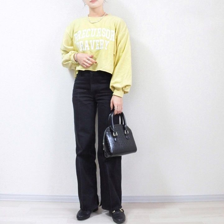 あえてブラック系のデニムを合わせて今年らしいスタイリングを楽しむのもおすすめ。