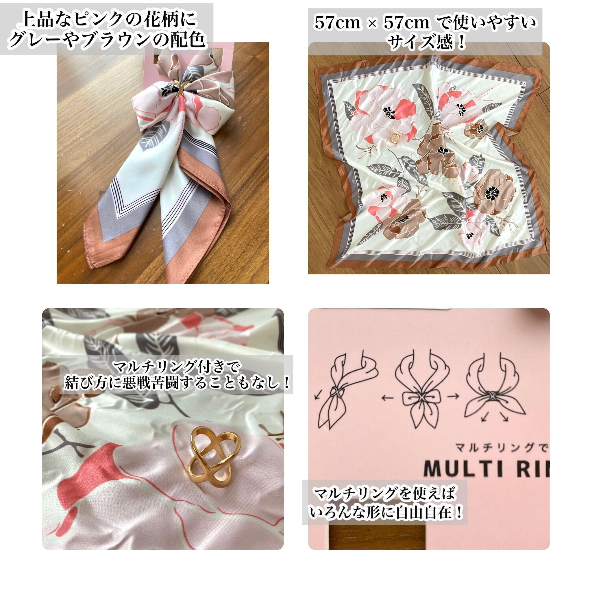 そしてプチプラでありながらスカーフの留め具になるマルチリングが付いています。