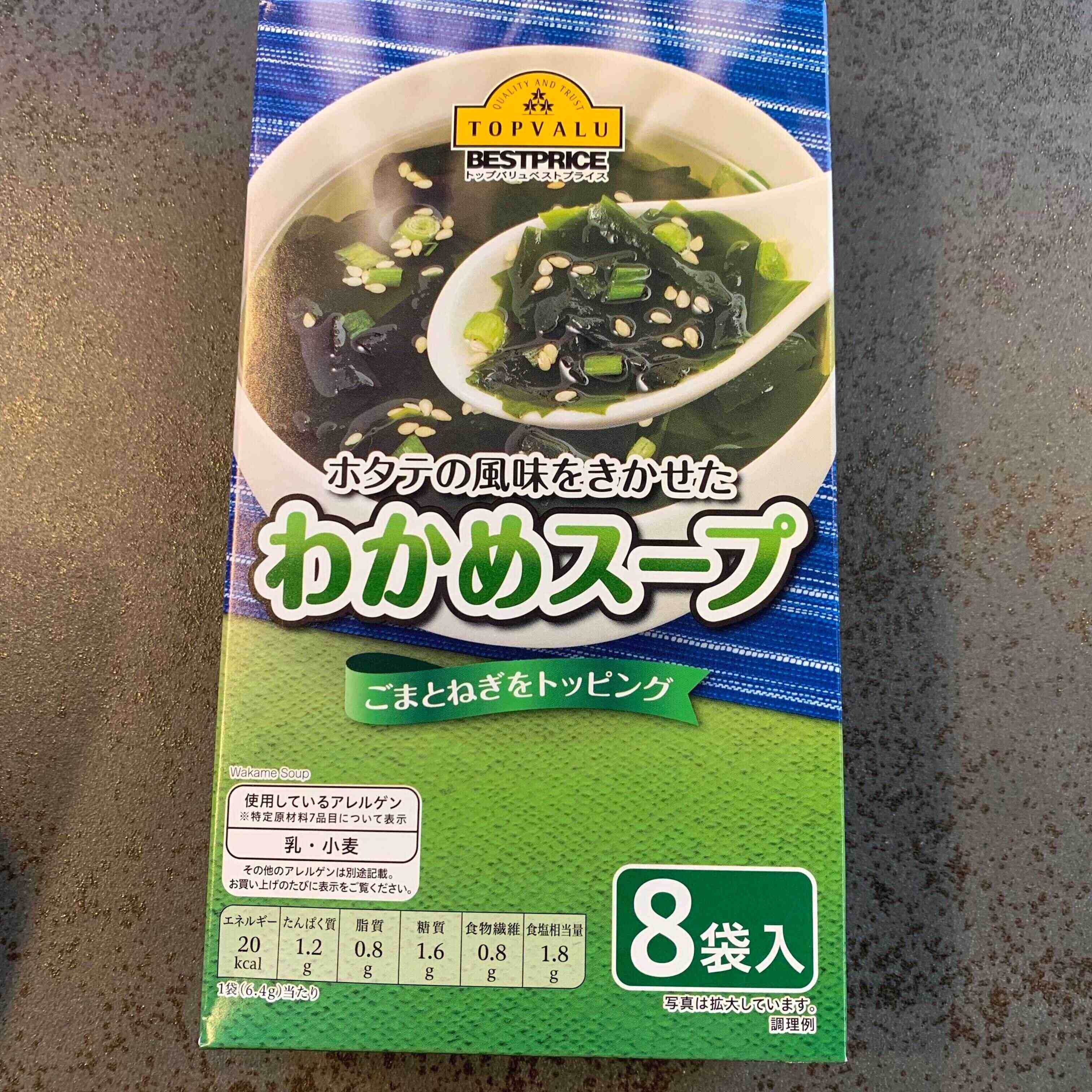 トップバリュ 「ホタテの風味をきかせたわかめスープ」。
